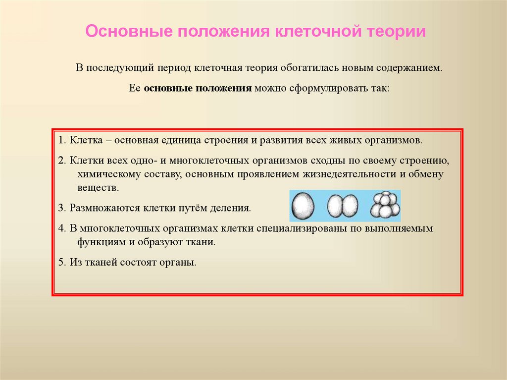 Основные положения клеточной теорииВ последующий период клеточная теория обогатилась новым содержанием.