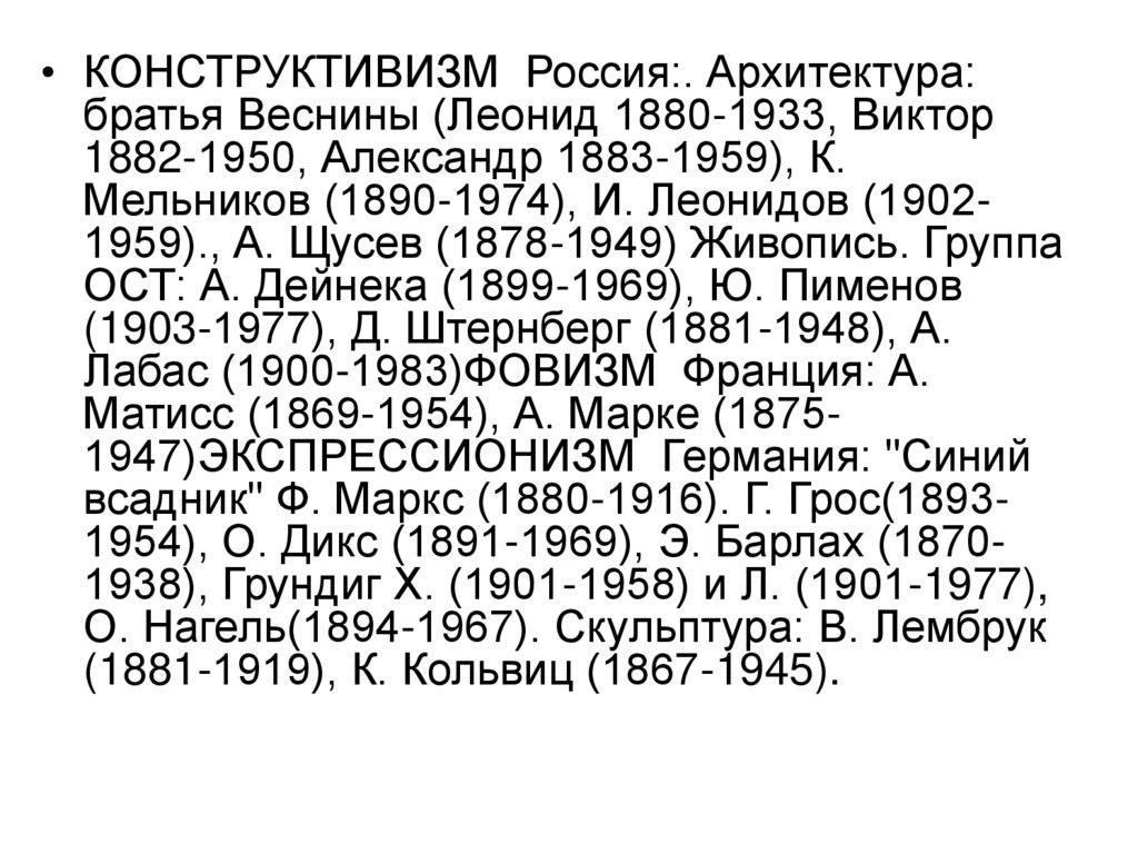 • КОНСТРУКТИВИЗМ Россия:. Архитектура:братья Веснины (Леонид 1880-1933, Виктор