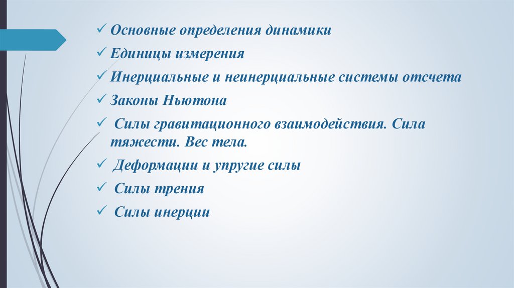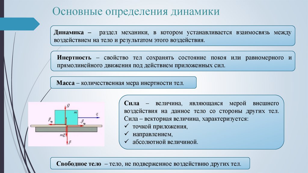 Основные определения динамикиДинамика – раздел механики, в котором устанавливается взаимосвязь между