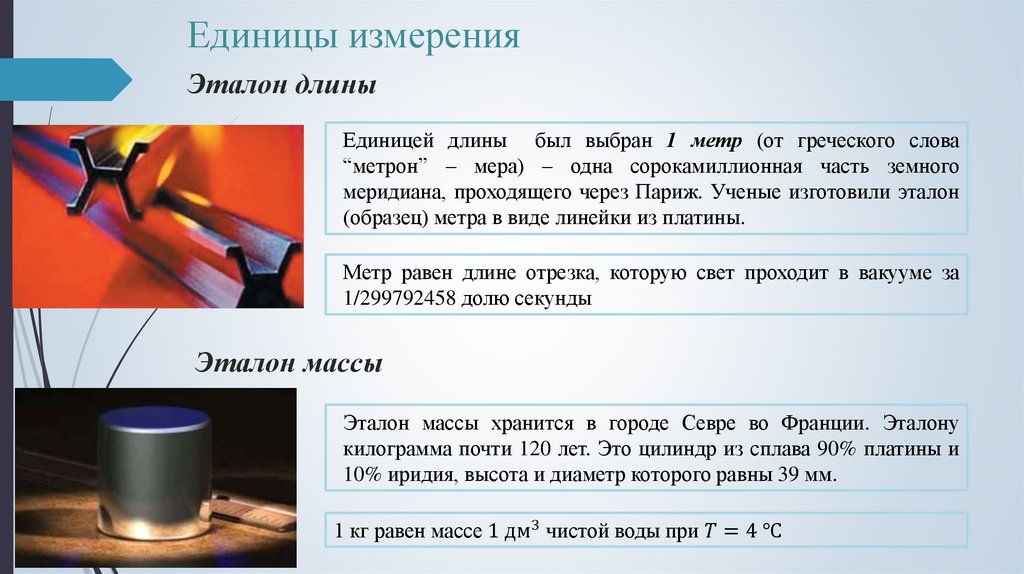 Единицей длины был выбран 1 метр (от греческого слова