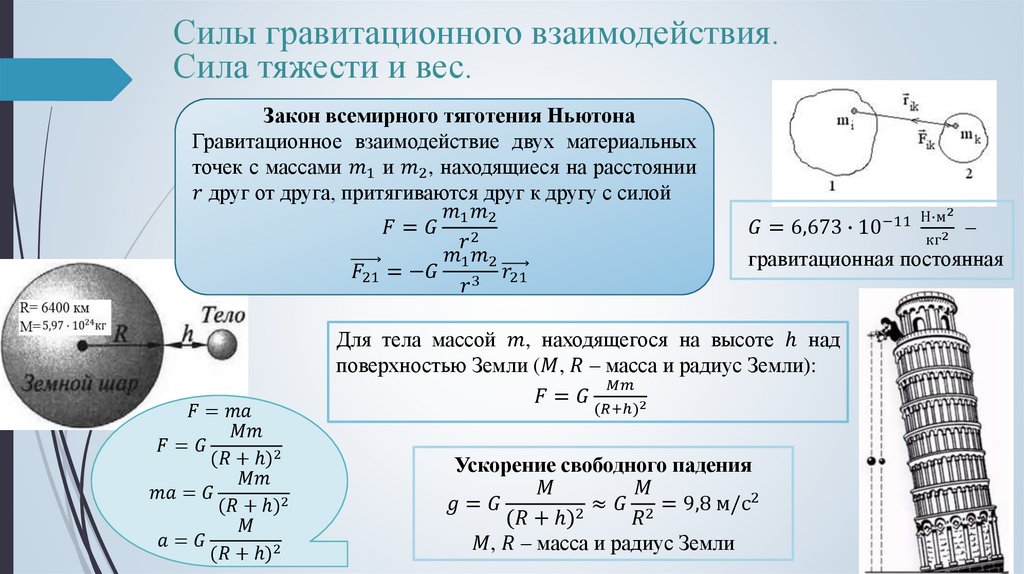 Силы гравитационного взаимодействия. Сила
