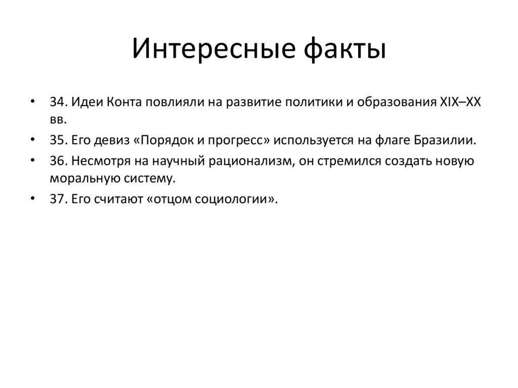Интересные факты• 34. Идеи Конта повлияли на развитие политики и образования XIX–XX