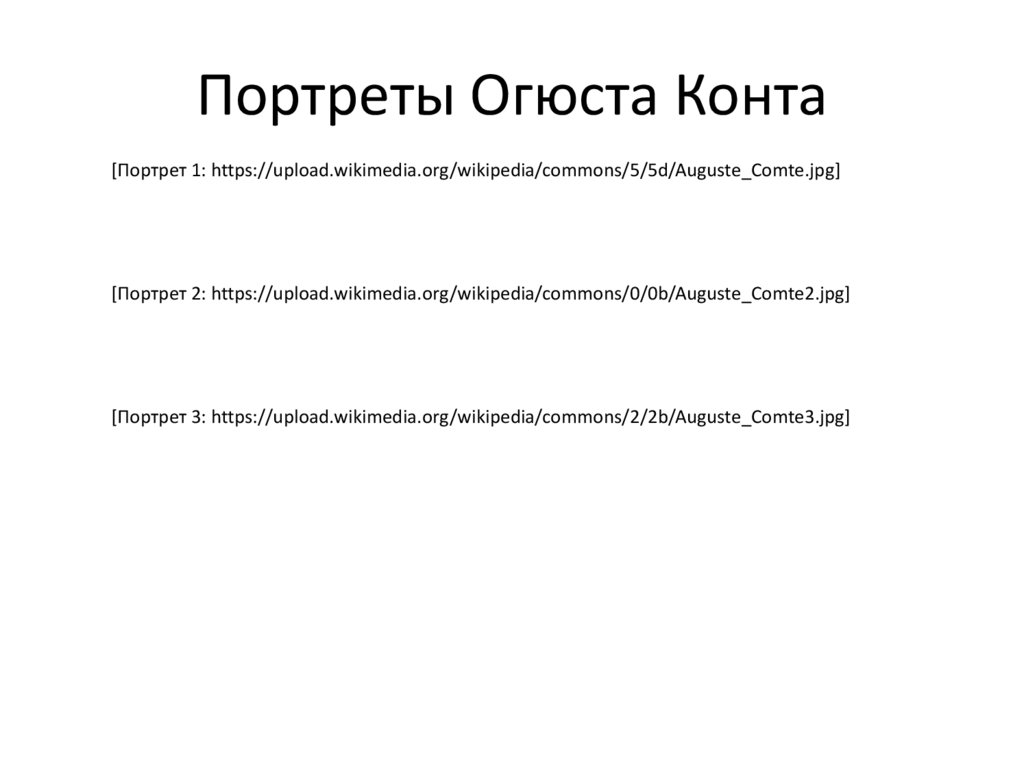 Портреты Огюста Конта[Портрет 1: https://upload.wikimedia.org/wikipedia/commons/5/5d/Auguste_Comte.jpg]