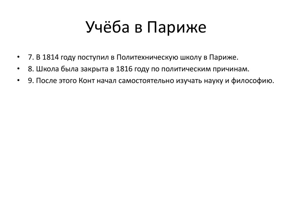 • 9. После этого Конт начал самостоятельно изучать науку и философию.