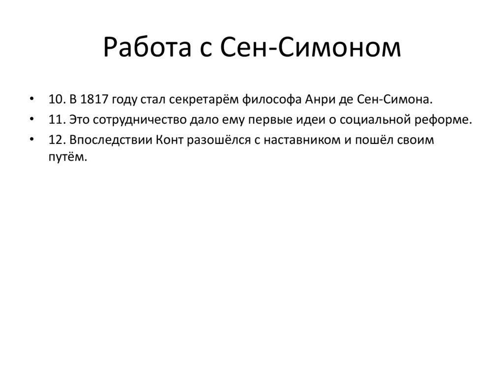 • 12. Впоследствии Конт разошёлся с наставником и пошёл своим