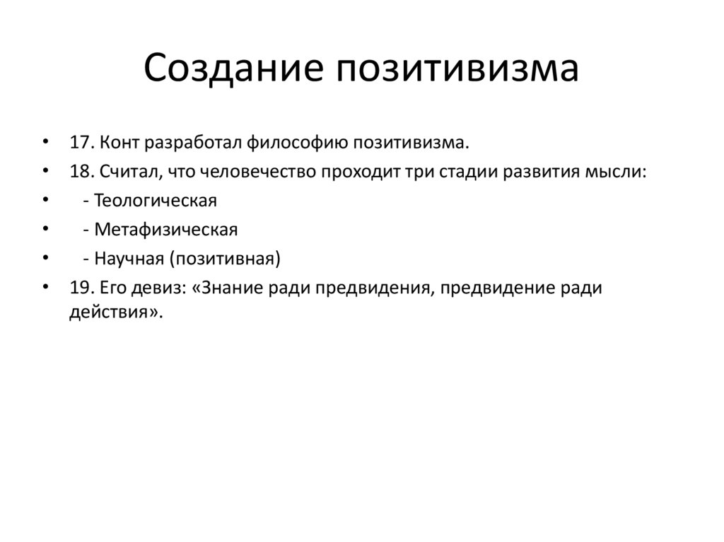 Создание позитивизма• 17. Конт разработал философию позитивизма.