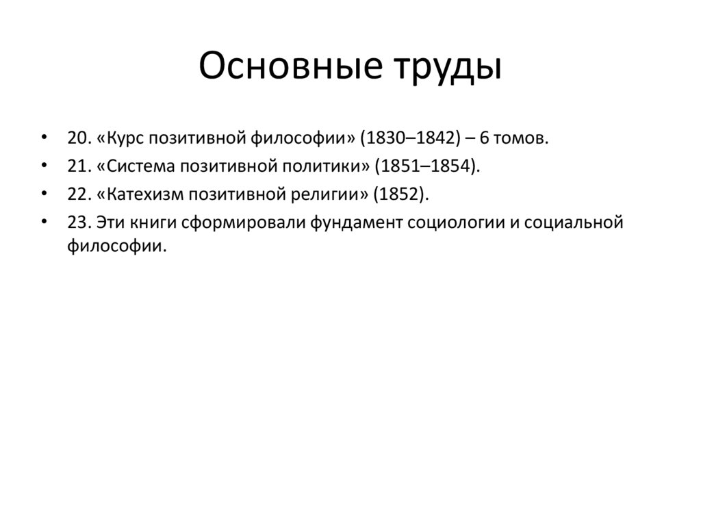 Основные труды20. «Курс позитивной философии» (1830–1842) – 6 томов.