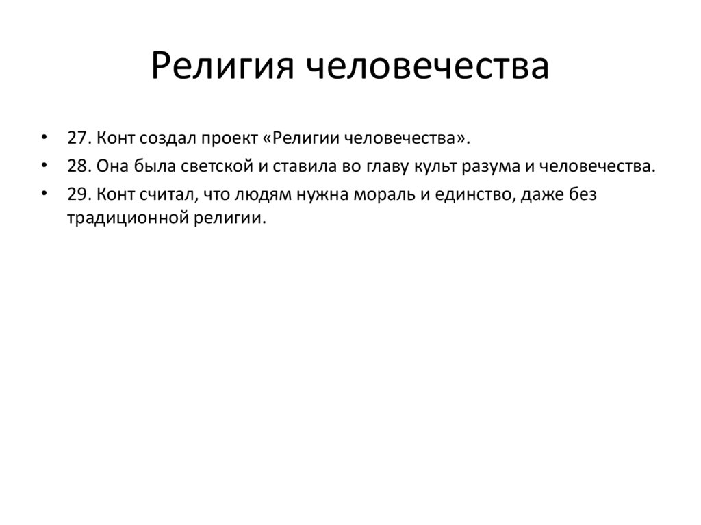 Религия человечества• 27. Конт создал проект «Религии человечества».