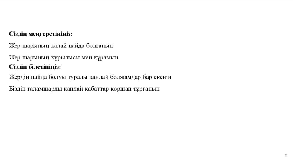 Сіздің меңгеретініңіз:Жер шарының қалай пайда болғанын