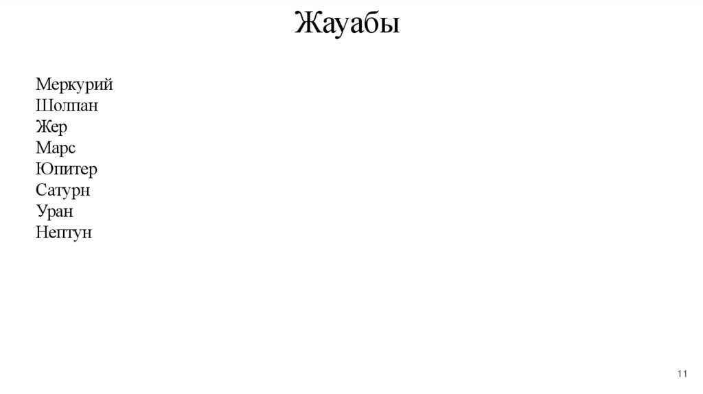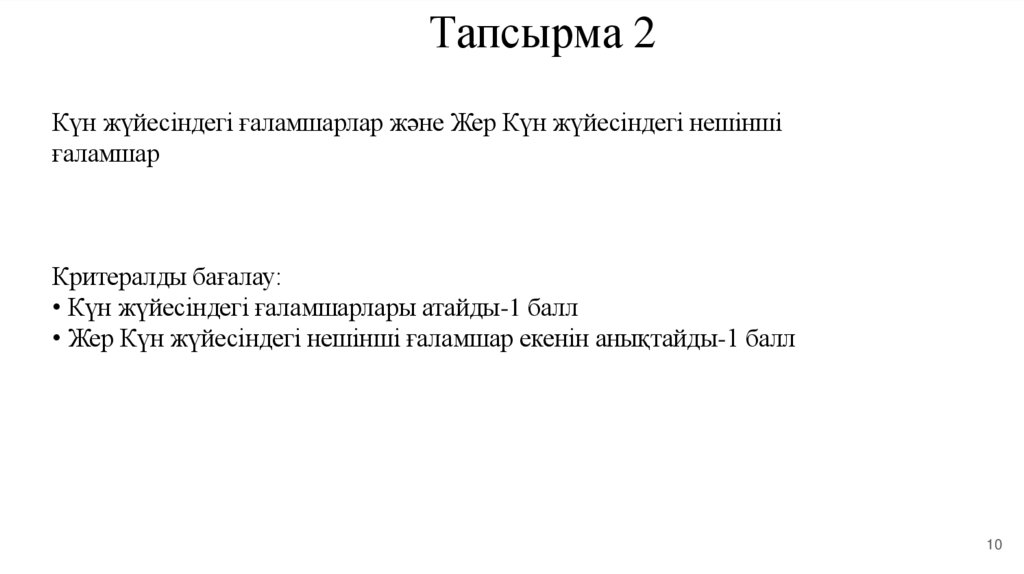 • Күн жүйесіндегі ғаламшарлары атайды-1 балл