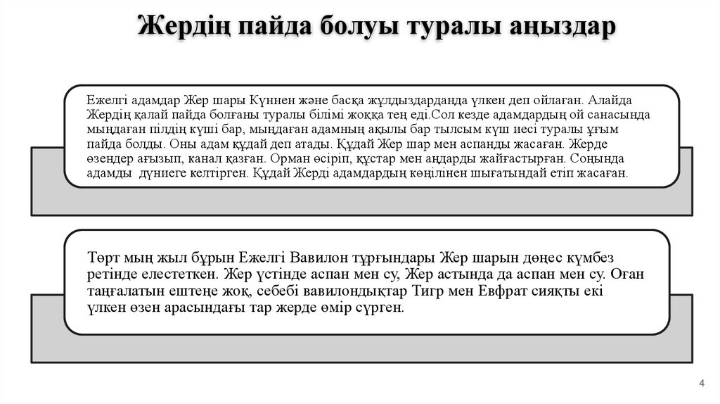Жердің қалай пайда болғаны туралы білімі жоққа тең еді.Сол кезде адамдардың ой санасында
