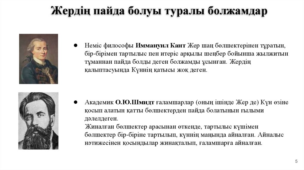 Жердің пайда болуы туралы болжамдар● Неміс философы Иммануил Кант Жер шаң бөлшектерінен тұратын,