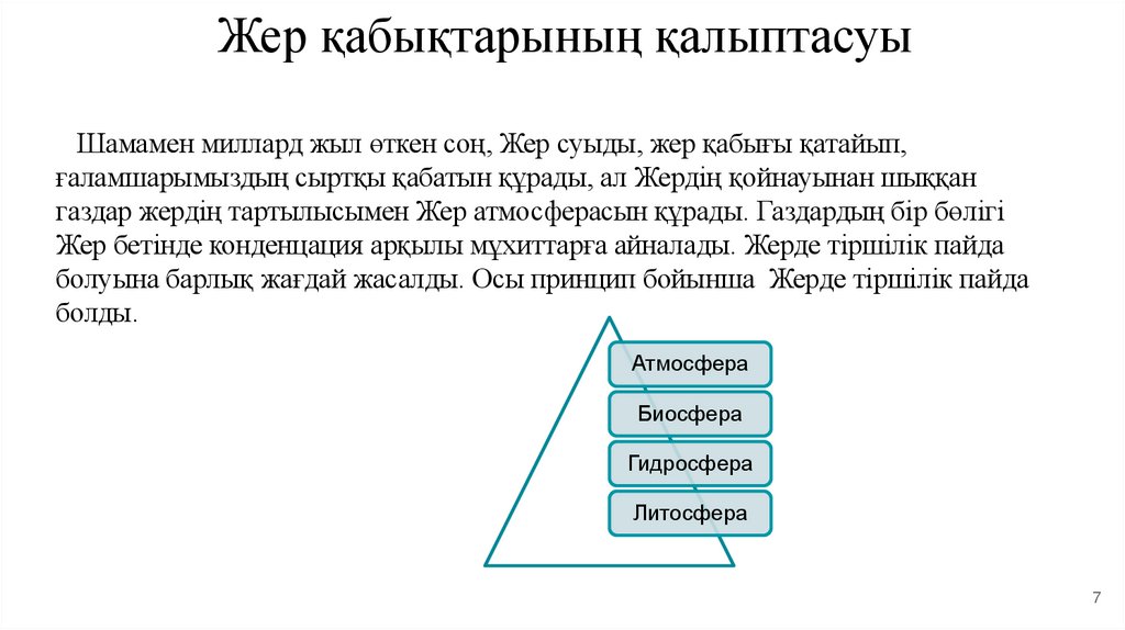 газдар жердің тартылысымен Жер атмосферасын құрады. Газдардың бір бөлігі