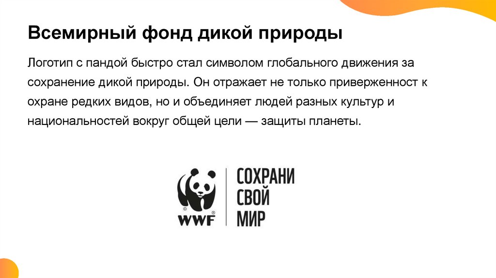 Всемирный фонд дикой природыЛоготип с пандой быстро стал символом глобального движения за