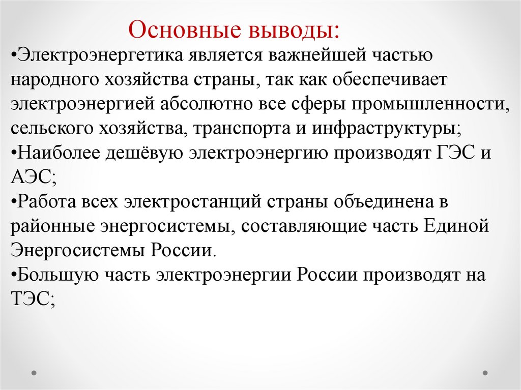 Основные выводы:•Электроэнергетика является важнейшей частью