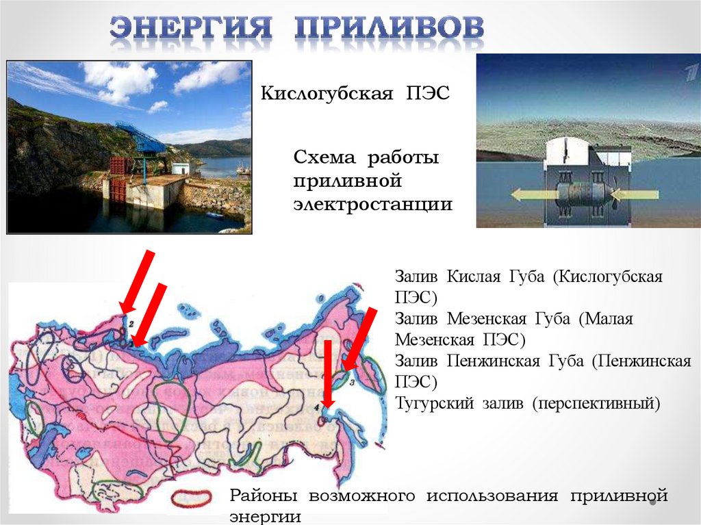 Районы возможного использования приливной