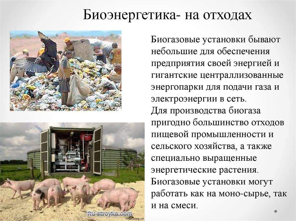 Биоэнергетика- на отходахБиогазовые установки бывают