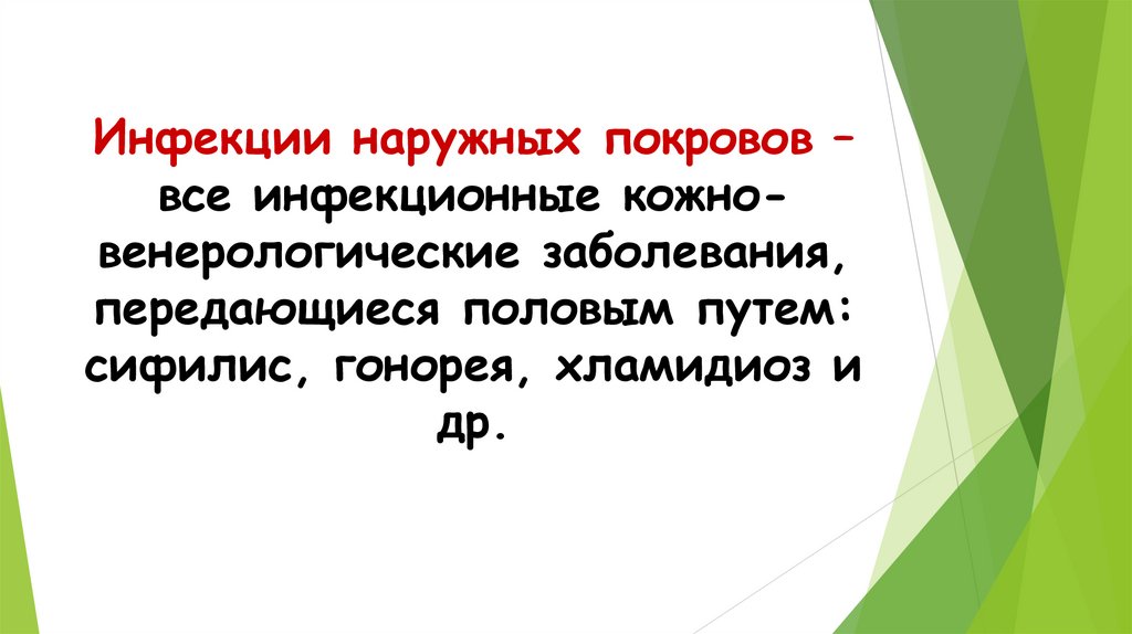 Инфекции наружных покровов –все инфекционные кожновенерологические заболевания,