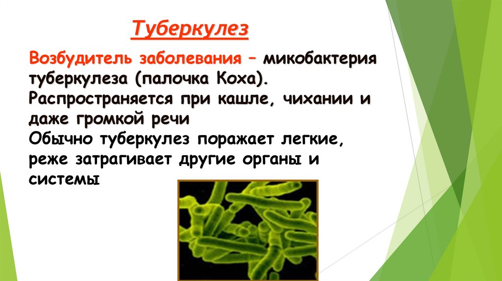 ТуберкулезВозбудитель заболевания – микобактерия