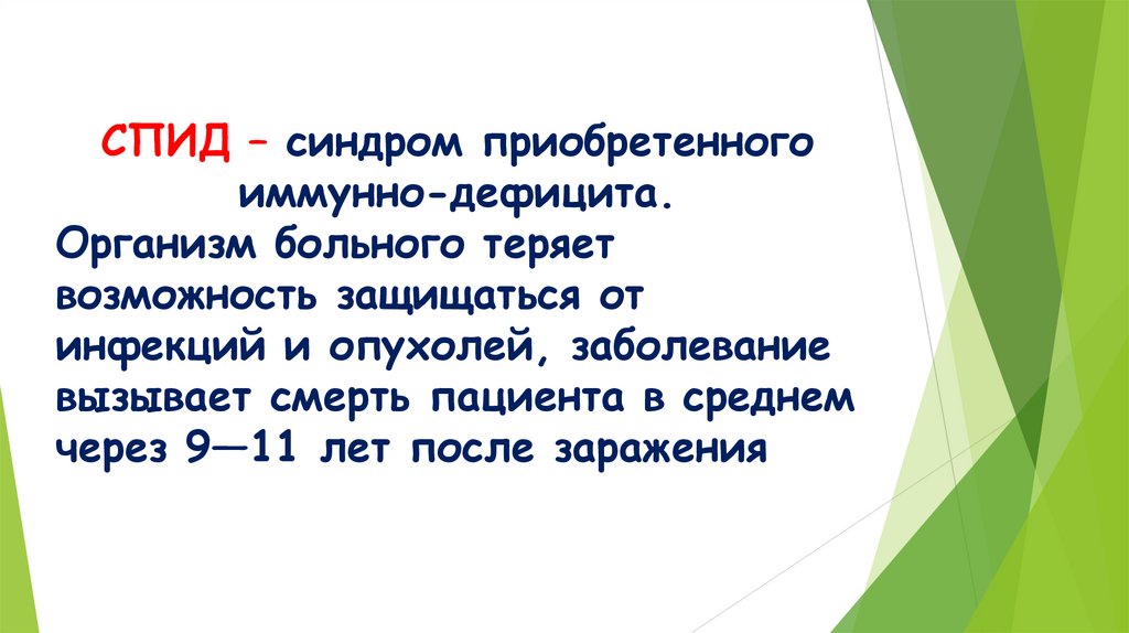 СПИД – синдром приобретенногоиммунно-дефицита.