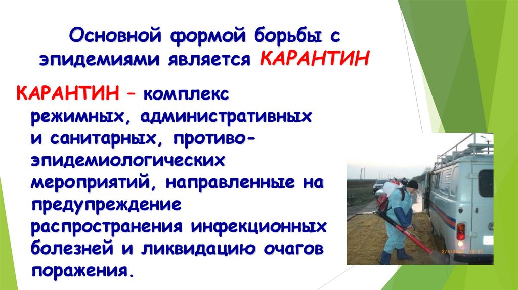 Основной формой борьбы сэпидемиями является КАРАНТИН