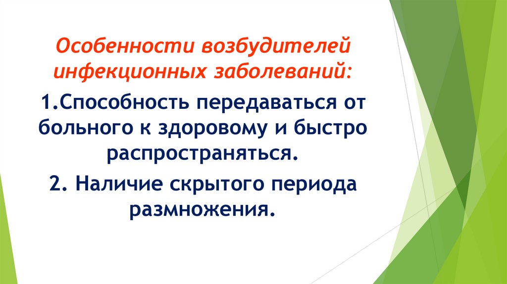 Особенности возбудителейинфекционных заболеваний: