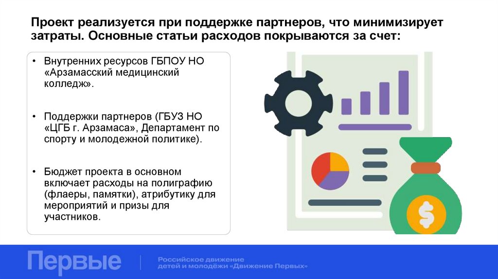 Проект реализуется при поддержке партнеров, что минимизируетзатраты. Основные статьи расходов покрываются за счет: