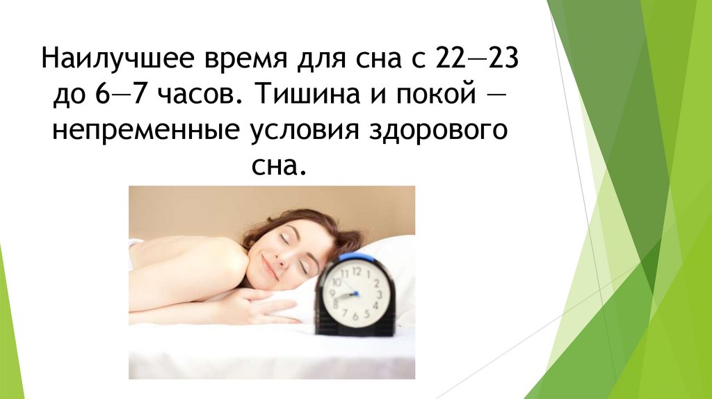 Наилучшее время для сна с 22—23до 6—7 часов. Тишина и покой —