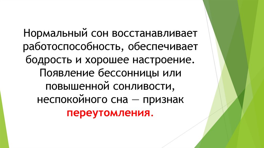 Нормальный сон восстанавливаетработоспособность, обеспечивает