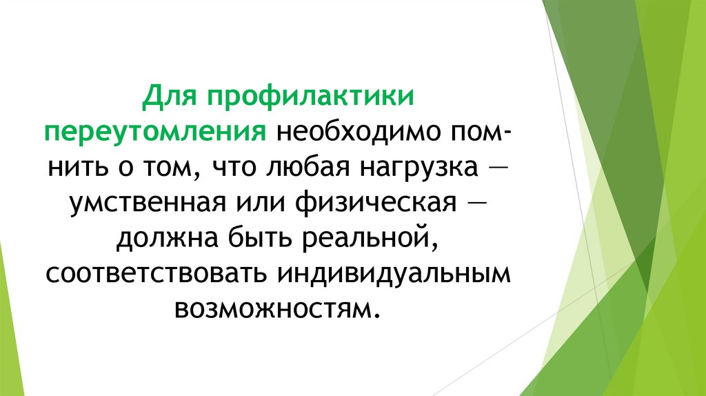 Для профилактикипереутомления необходимо помнить о том, что любая нагрузка —
