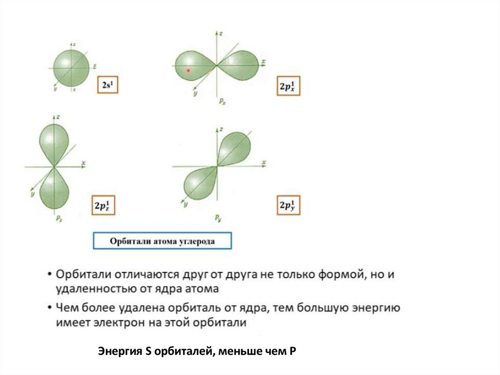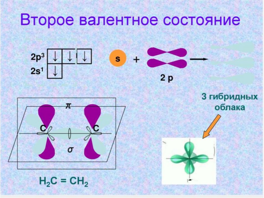 Электронное строение атома углерода (основное и возбуждённое состояния). Валентные во