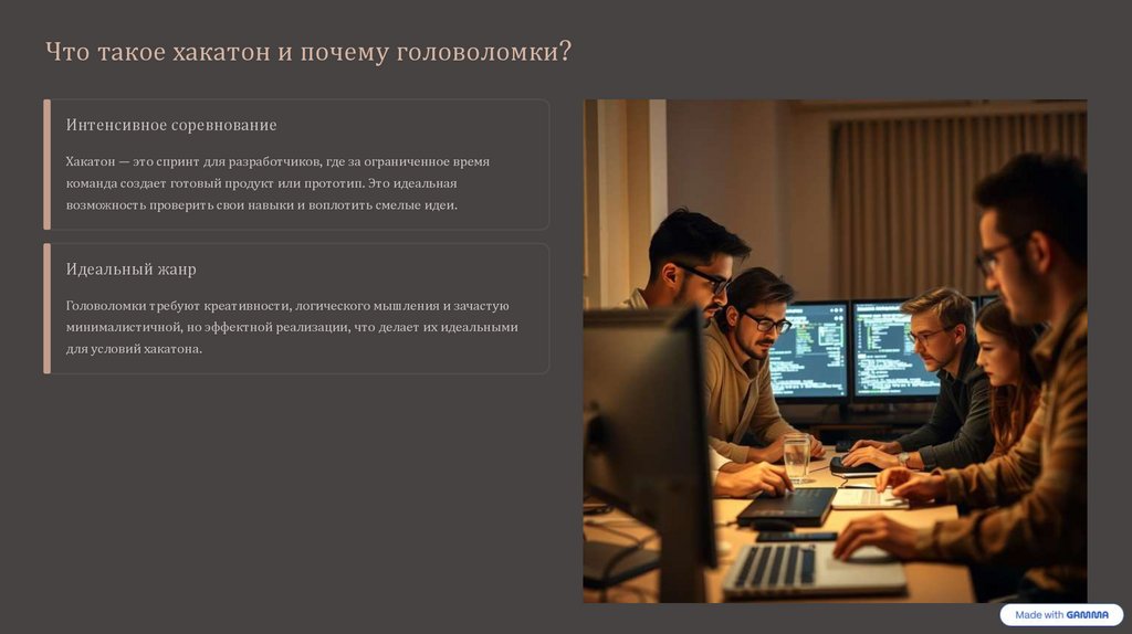 Что такое хакатон и почему головоломки?Интенсивное соревнование