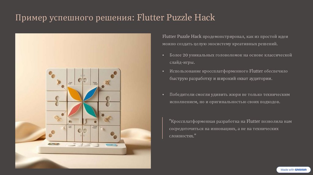 Пример успешного решения: Flutter Puzzle HackFlutter Puzzle Hack продемонстрировал, как из простой идеи