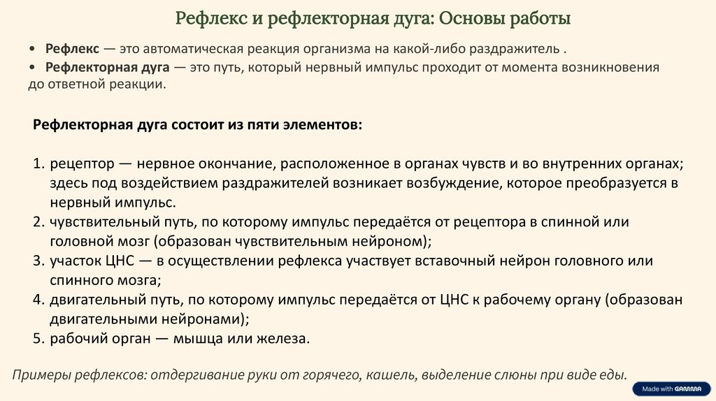 Рефлекс и рефлекторная дуга: Основы работы• Рефлекс — это автоматическая реакция организма на какой-либо раздражитель .