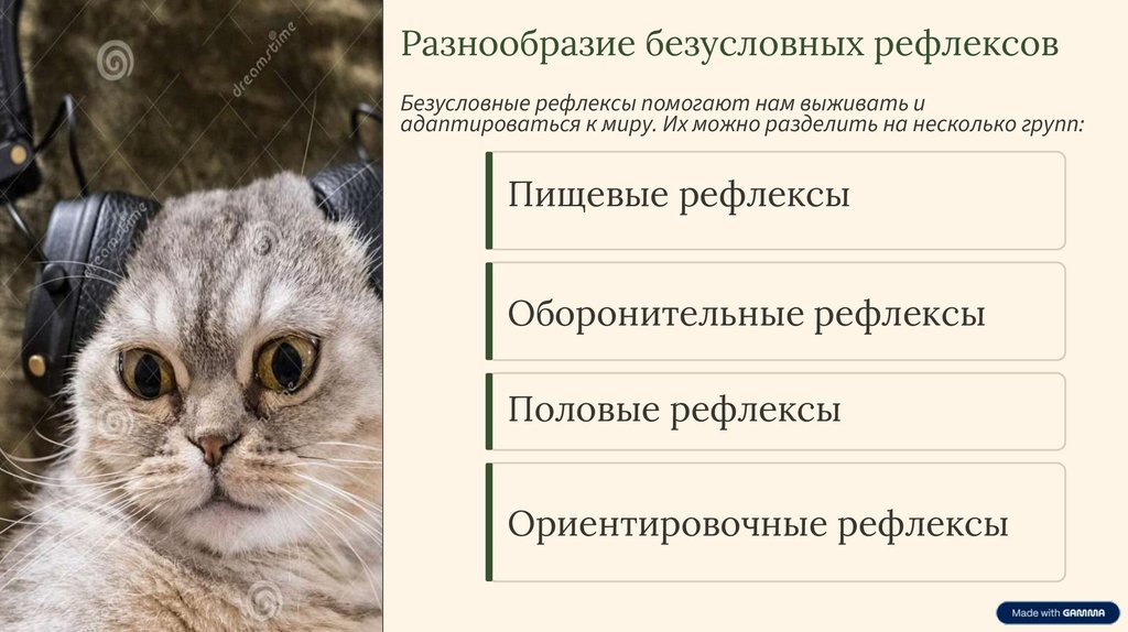 Разнообразие безусловных рефлексовБезусловные рефлексы помогают нам выживать и