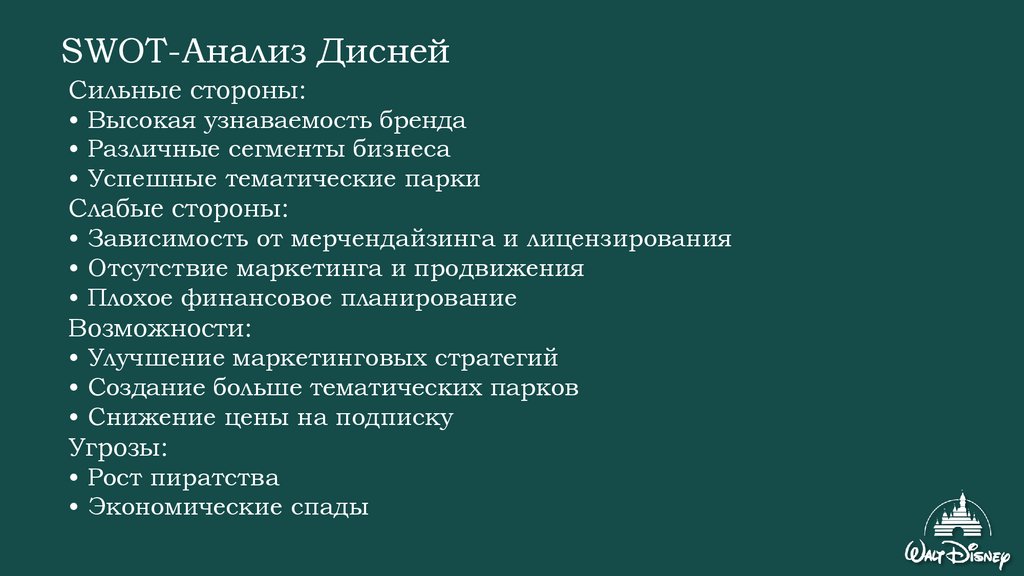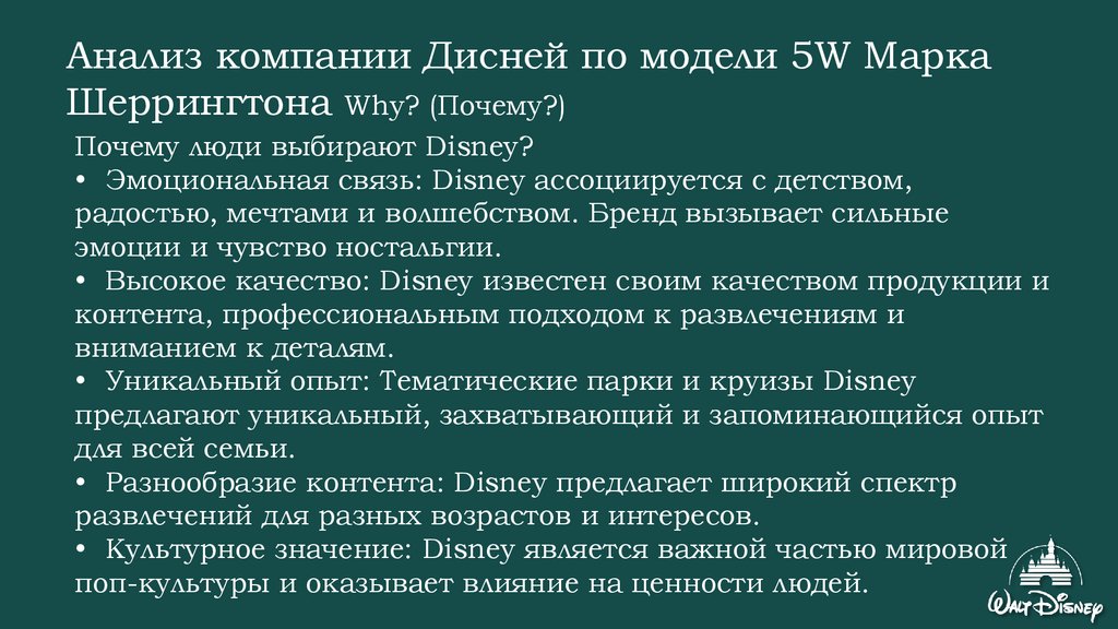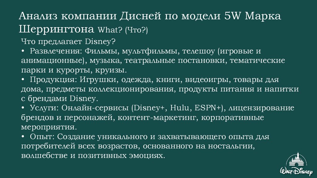 Анализ компании Дисней по модели 5W МаркаШеррингтона What? (Что?)