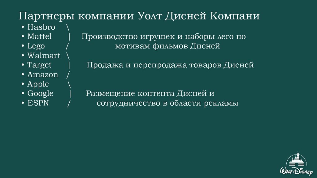 Партнеры компании Уолт Дисней Компани• Hasbro \