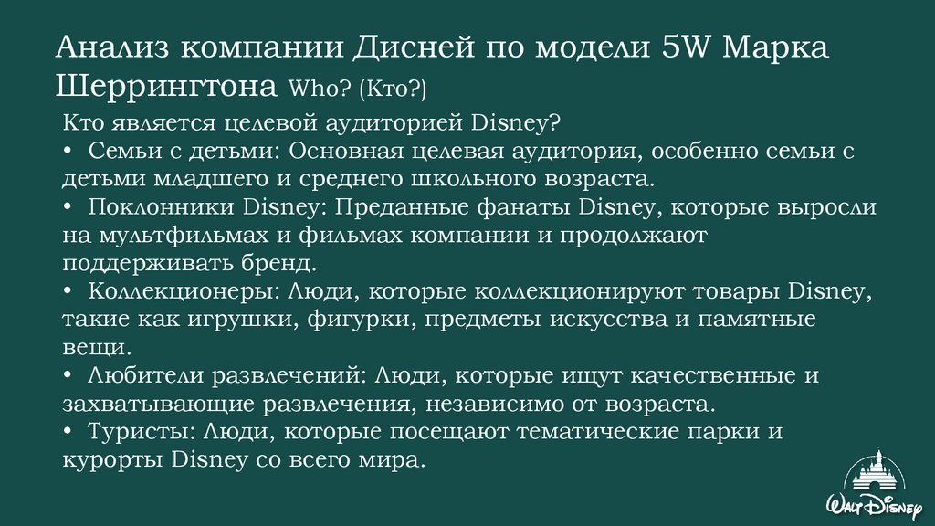 Анализ компании Дисней по модели 5W МаркаШеррингтона Who? (Кто?)