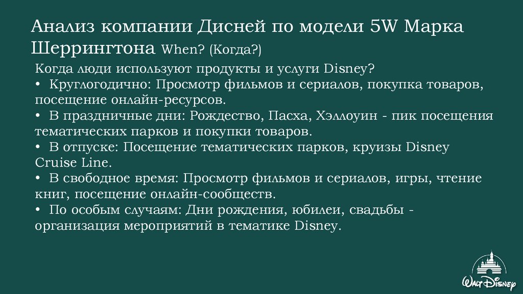 Анализ компании Дисней по модели 5W МаркаШеррингтона When? (Когда?)