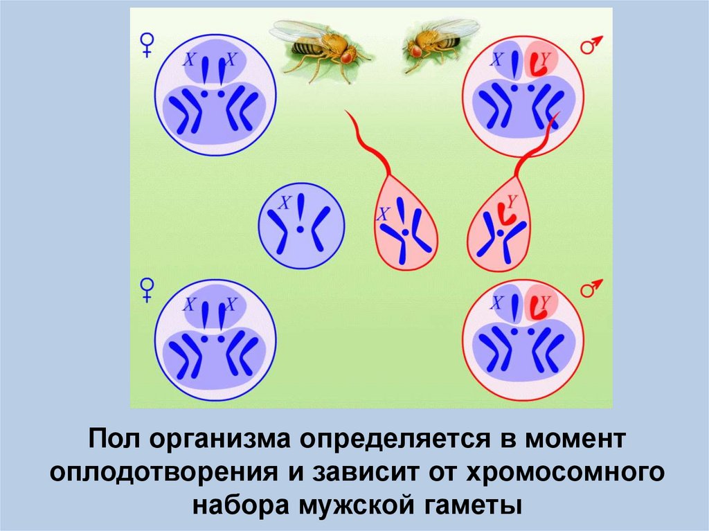 Пол организма определяется в моментоплодотворения и зависит от хромосомного