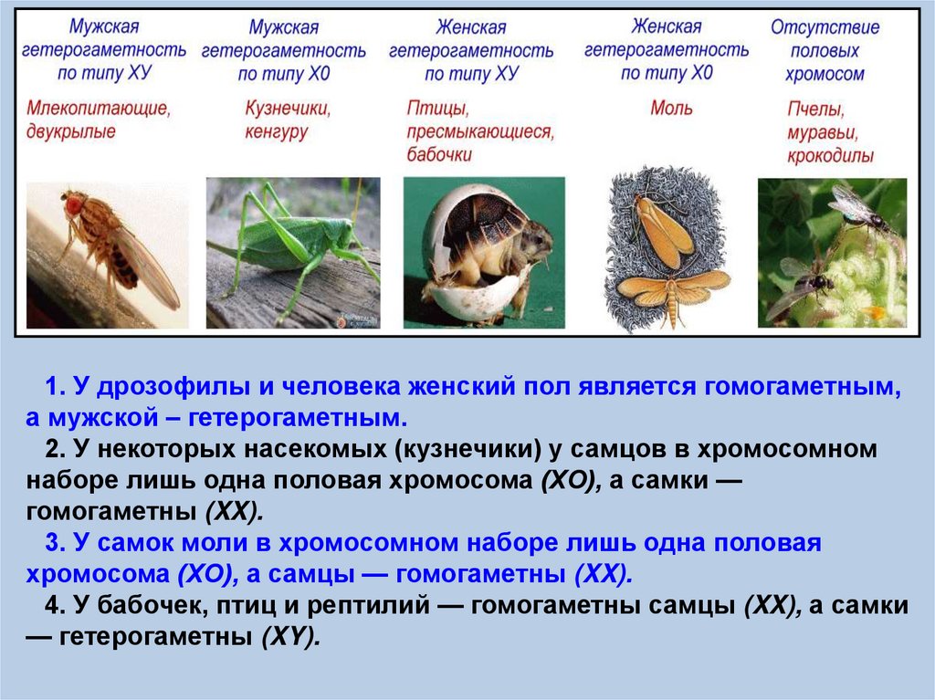 1. У дрозофилы и человека женский пол является гомогаметным,а мужской – гетерогаметным.