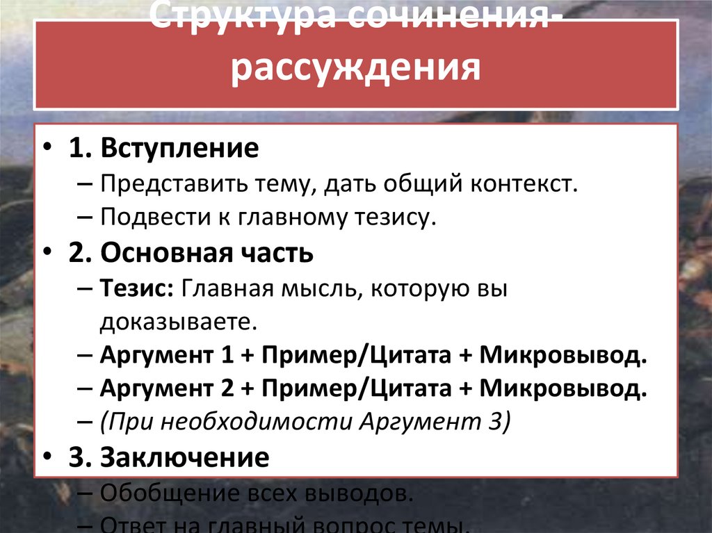 – Аргумент 1 + Пример/Цитата + Микровывод.