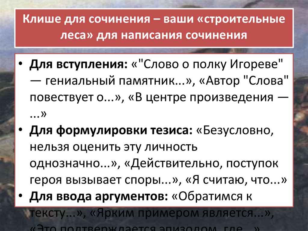Клише для сочинения – ваши «строительныелеса» для написания сочинения