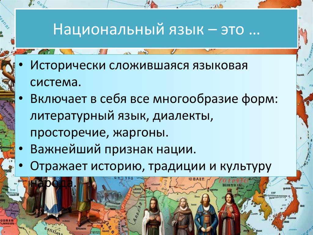 Национальный язык – это …• Исторически сложившаяся языковая
