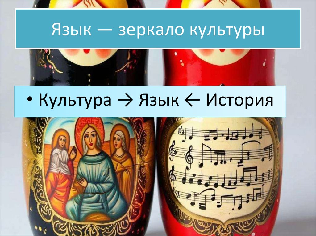 Язык — зеркало культуры• Культура → Язык ← История