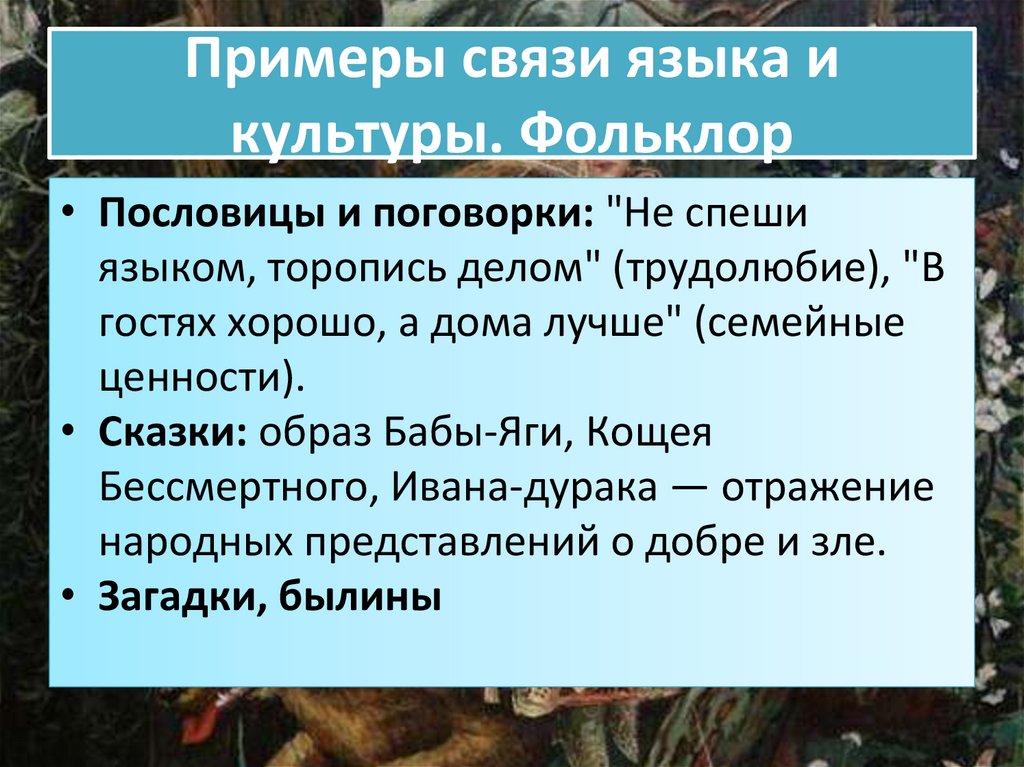 Примеры связи языка икультуры. Фольклор
