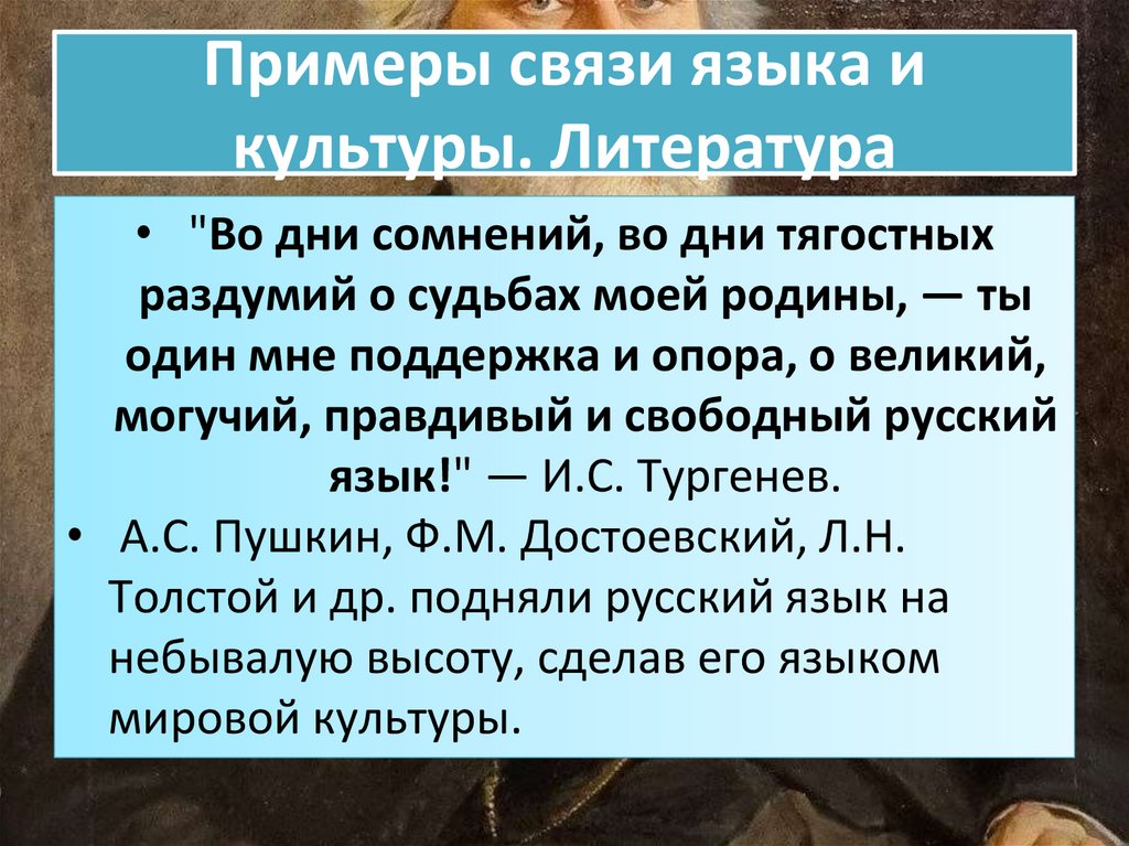 Примеры связи языка икультуры. Литература