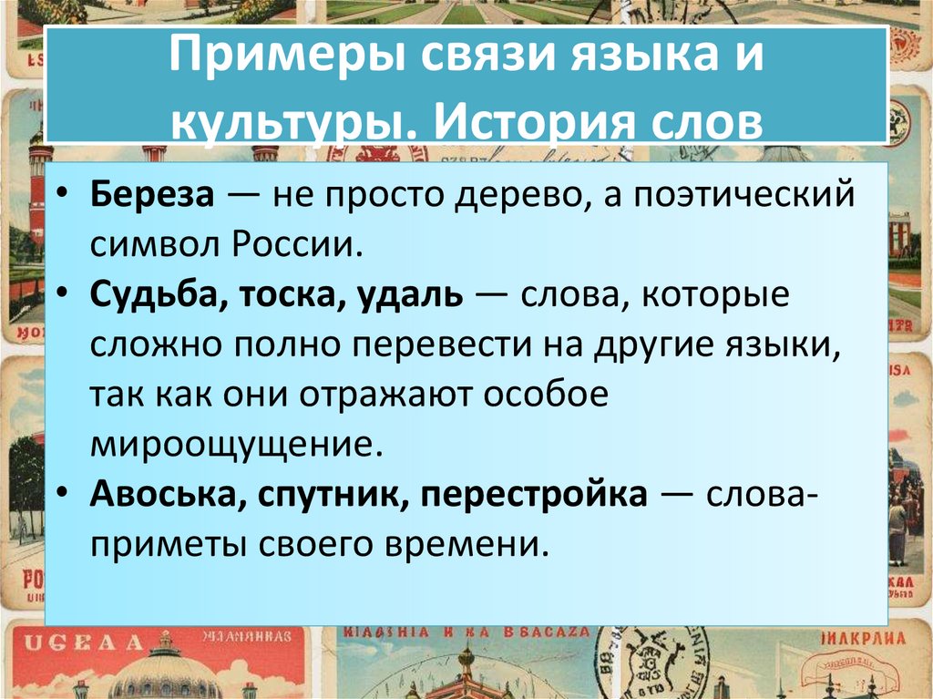 Примеры связи языка икультуры. История слов