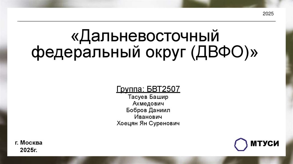 «Дальневосточный федеральныйокруг (ДВФО)»