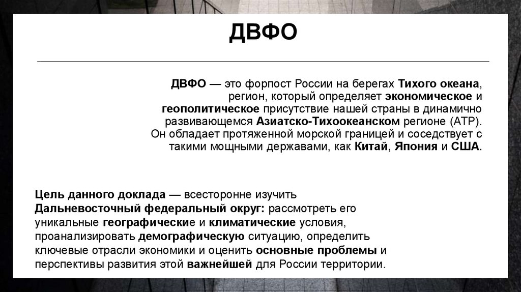 Дальневосточный федеральный округ (ДВФО)— это уникальный и стратегически важный